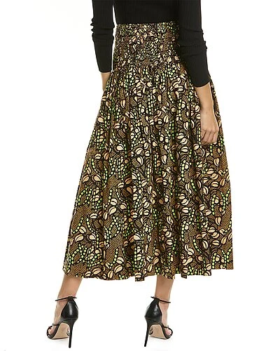 - Catalina Skirt in nude peach and green kick multicolor with smocked waist