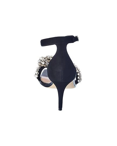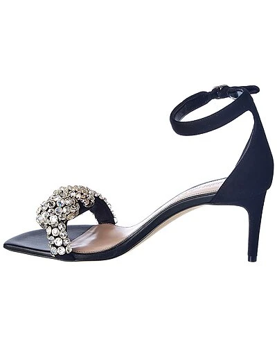 - Crystal Embellished Suede Sandal in black suede and leather and silver-tone hardware with crystal embellishments