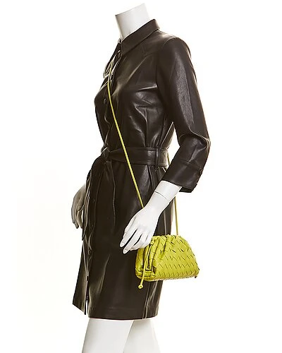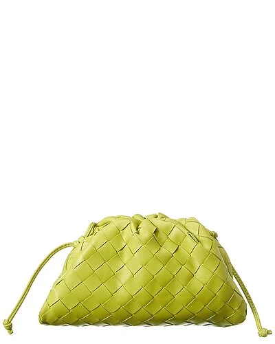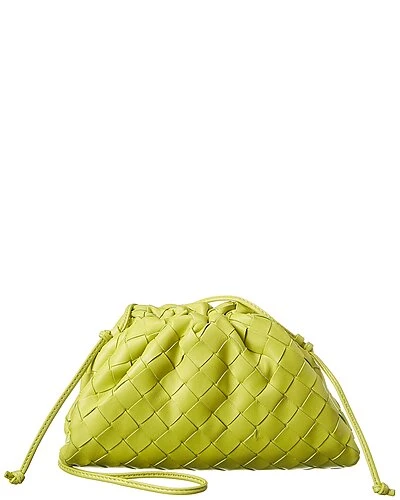 - The Pouch Mini Intrecciato Leather Crossbody in green intrecciato leather with gold-tone hardware
