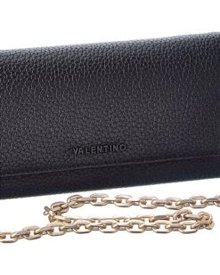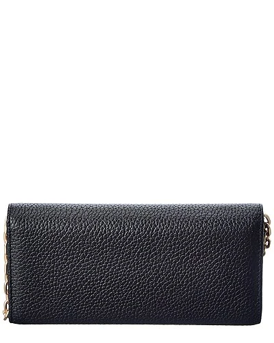 - Juniper Leather Wallet On Chain in black leather and gold-tone hardware with chain strap