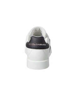 - Portofino DG Logo Leather Sneaker in white and black leather with silver-tone hardware and logo accents