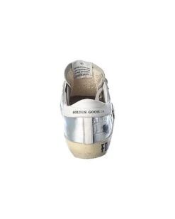 - Superstar Leather & Suede Sneaker in silver croc-embossed leather and ice grey suede with star patch applique