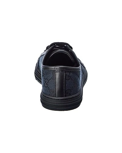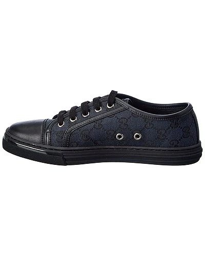 - GG Canvas & Leather Sneaker in black GG canvas and leather and dark silver hardware