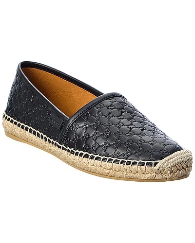 - GG Leather Espadrille in black GG leather with logo tab