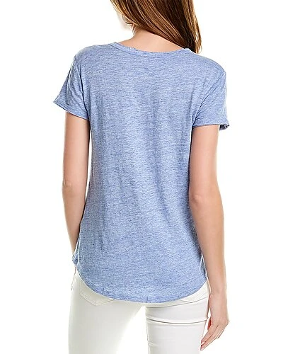 - Kacey Linen-Blend Top in chambray with V-neck and raw edge hem