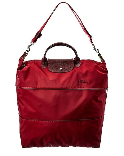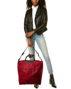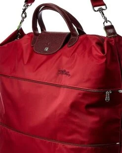 - Le Pliage Green Tote in red canvas with foldable design