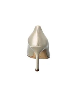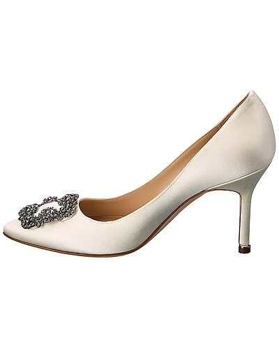 - Hangisi 90 Satin Pump in white satin and gunmetal-tone hardware with crystal buckle