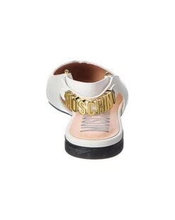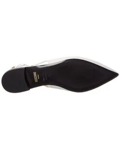 - Design details: gold-tone hardware, elasticized slingback strap with logo lettering