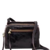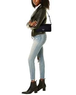 - Femme Brushed Leather Shoulder Bag in black leather and steel finish hardware with logo accent and exterior pocket