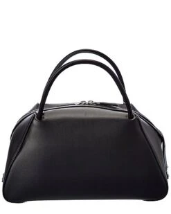 - Femme Brushed Leather Shoulder Bag in black leather and steel finish hardware with logo accent and exterior pocket
