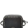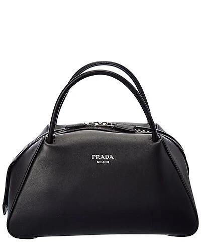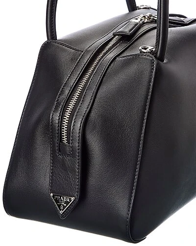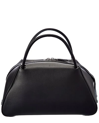 - Logo Medium Leather Satchel in black leather and steel finish hardware with logo accent