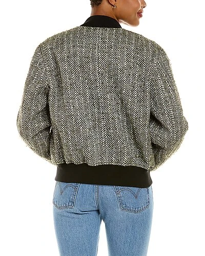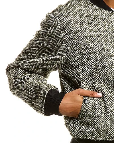 - Manston Bomber Jacket in green multicolor with ribbed trim and two front pockets