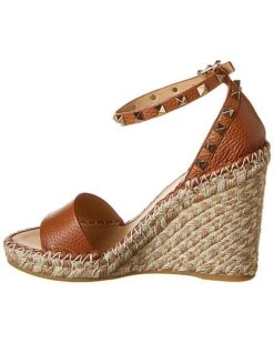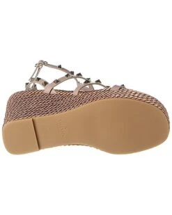 - Leather Sandal in powder leather with platinum finish pyramid stud details and hardware and rope base