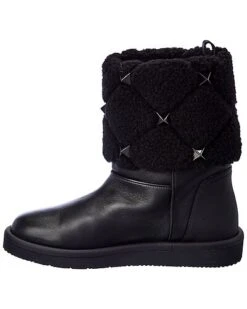 - Rockstud Leather Camera Bag in black grainy leather with platinum finish rockstuds