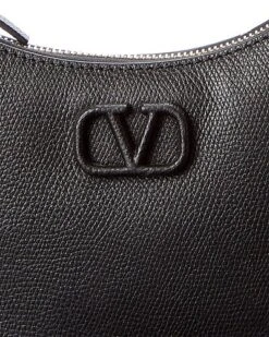 - VLogo Grainy Leather Shoulder Bag in black grainy leather and gold-tone hardware with VLogo accent